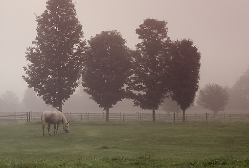 Horse in fog pasture, Billings Farm, Woodstock, Vermont #7695-22